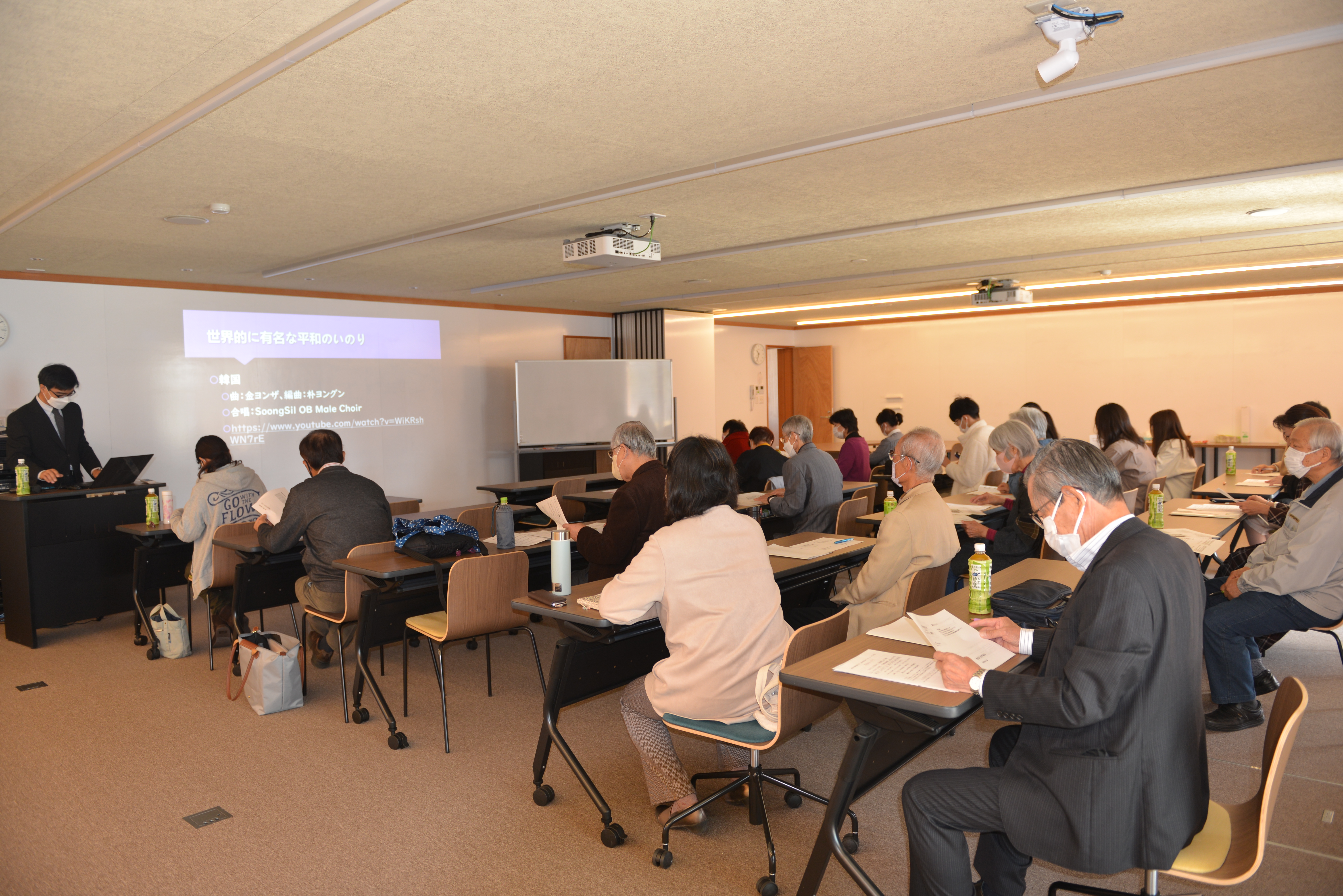11月5日(土)、新木造校舎でのSANBIKAワークショップ2022の第1回が20人の参加者とともに開催されました。「平和のいのり」をテーマに2曲について、李宗教主任による講話や交流会もはさみつつ、最後は四声合唱も見事に実現しました。